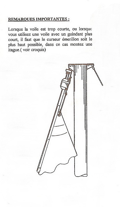 En cas de voile un peu plus courte que l'étai voici le montage (simple) préconisé par Facnor.