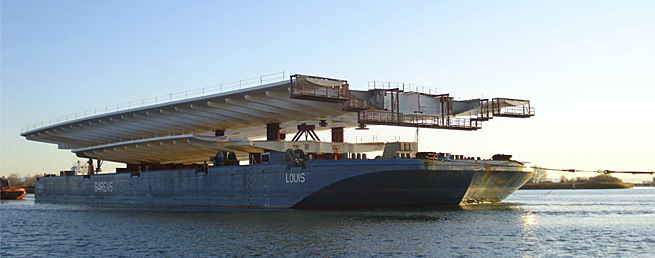 Et ma question est : est-il possible d'acheminer la barge de port en port via la mer ? Et si oui, via quel moyen ? Remorqueur, pousseur ?