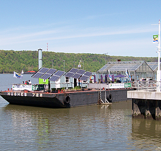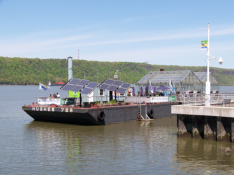 L'idée est de construire une petite installation fixe (comme un petit bâtiment) sur ce type de barge : crispgreen.com[...]e-2.jpg