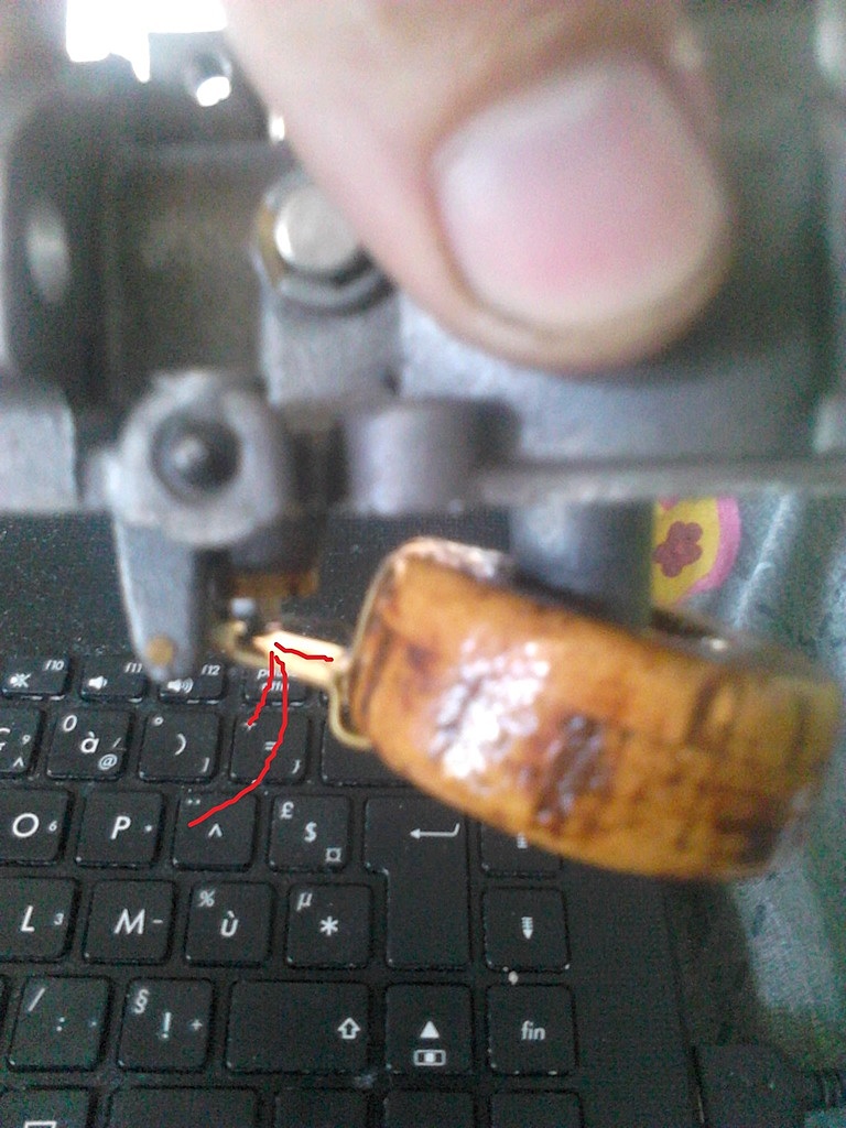 Je confirme: le pointeau (sous la patte métal) absent, remonté a l'envers, la patte déréglée.