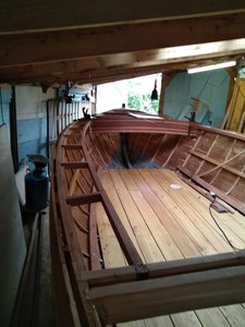 je me suis lancer dans la conception d'un canot à moteur type dinghy des années 50 à clin avec membrures en acacia et non robinier, et j'ai coupé des planches de mélèze pour le plancher de mon cockpit, planches que j'ai imbibées de saturateur et c'est tout.