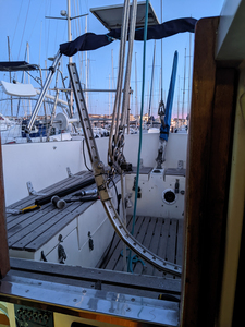 Sur mon Gladiateur, j'ai remplacé mon rail Goïot d'origine par un Harken, pour bénéficier d'un chariot Windward. Impossible de dévisser une seule vis, elles étaient littéralement soudées avec le rail. J'ai donc foré la première, et puis j'ai progressivement soulevé mon rail avec mon palan d'écoute, pour couper les vis une à une avec une lame de scie à métaux. Triste méthode, mais efficace.