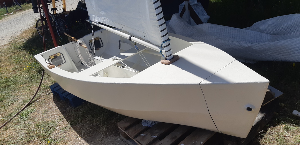 L'ancienne devait faire 60/70 kilos (trop de tri axial carbone et épaisseur inutile de cp), plus petite de qques cm,mais plus étroite et équipée avec une dérive pivotante et voile lattée.