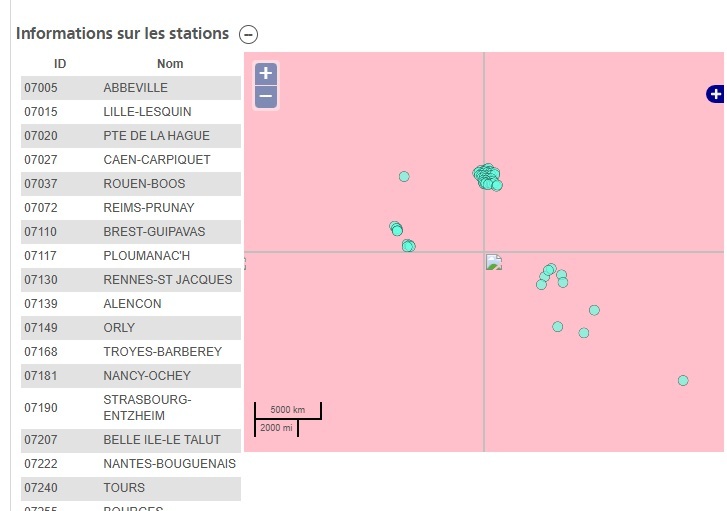 sur le site Météo France, comment fais-tu pour avoir la liste des stations afin de sélectionner la plus proche?