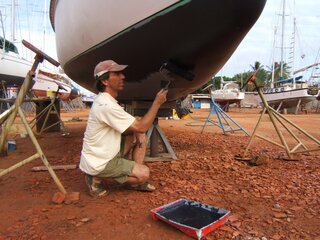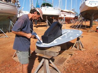 Aussi, ne pas oublier l'anti salissure dans la partie haute de la dérive avant de remonter le tout...
