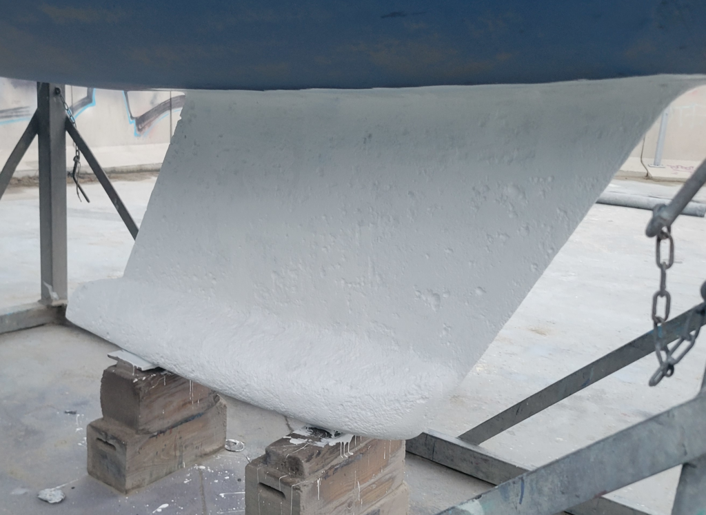 Vidéo de notre quille après sablage et époxy (avant mastic)