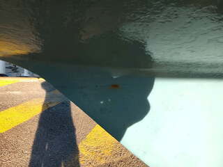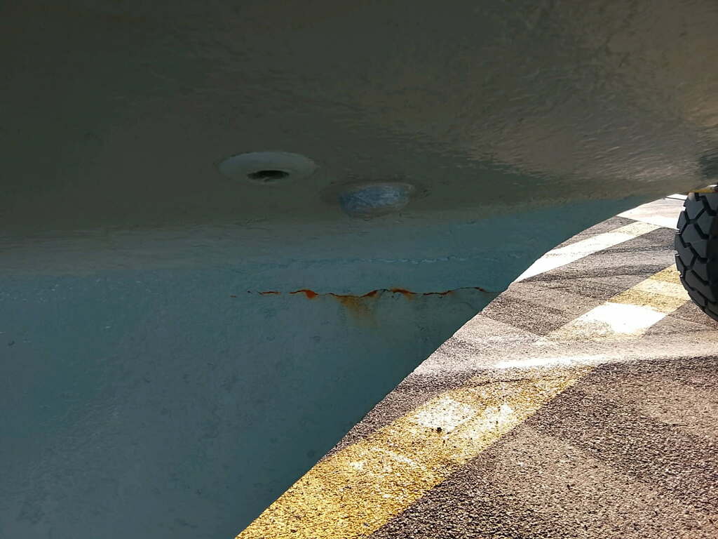 sur la photo montrant l'arrière de la quille, coté bâbord, à la jonction quille/coque on voit une fissure VERTICALE qui part du joint de quille vers le bas sur au moins 10cm.