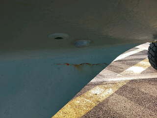 Au moment de la sortie de l'eau, constat que la quille bouge,joint de laison bien creusé.(la derniere photo, ou il n'y a pas de coulures)