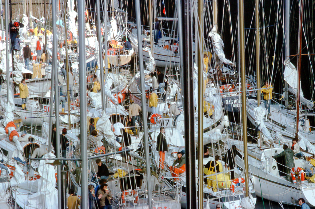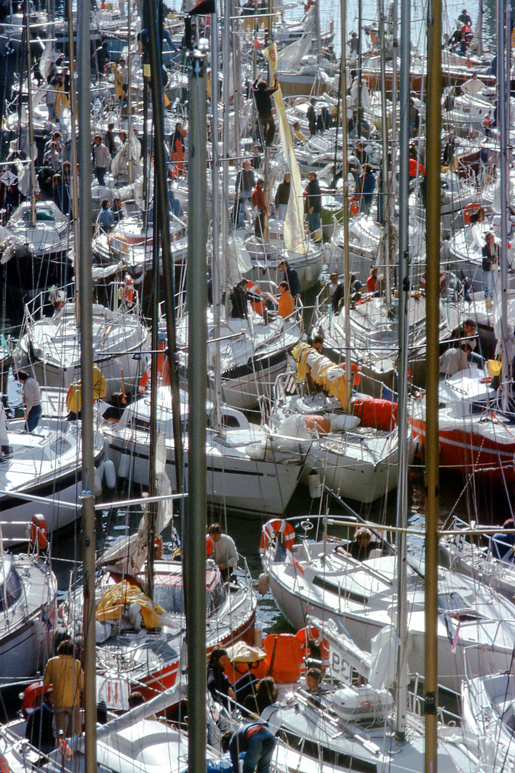 En 1974, lors d’un entrainement dans la brise à La Trinité sur mer, deux de mes équipiers étaient en retard. Nous les avons attendu jusqu’au dernier moment et sommes parti à l’arrache, en rejoignant la flotte sur le point de prendre le départ à la Souris.