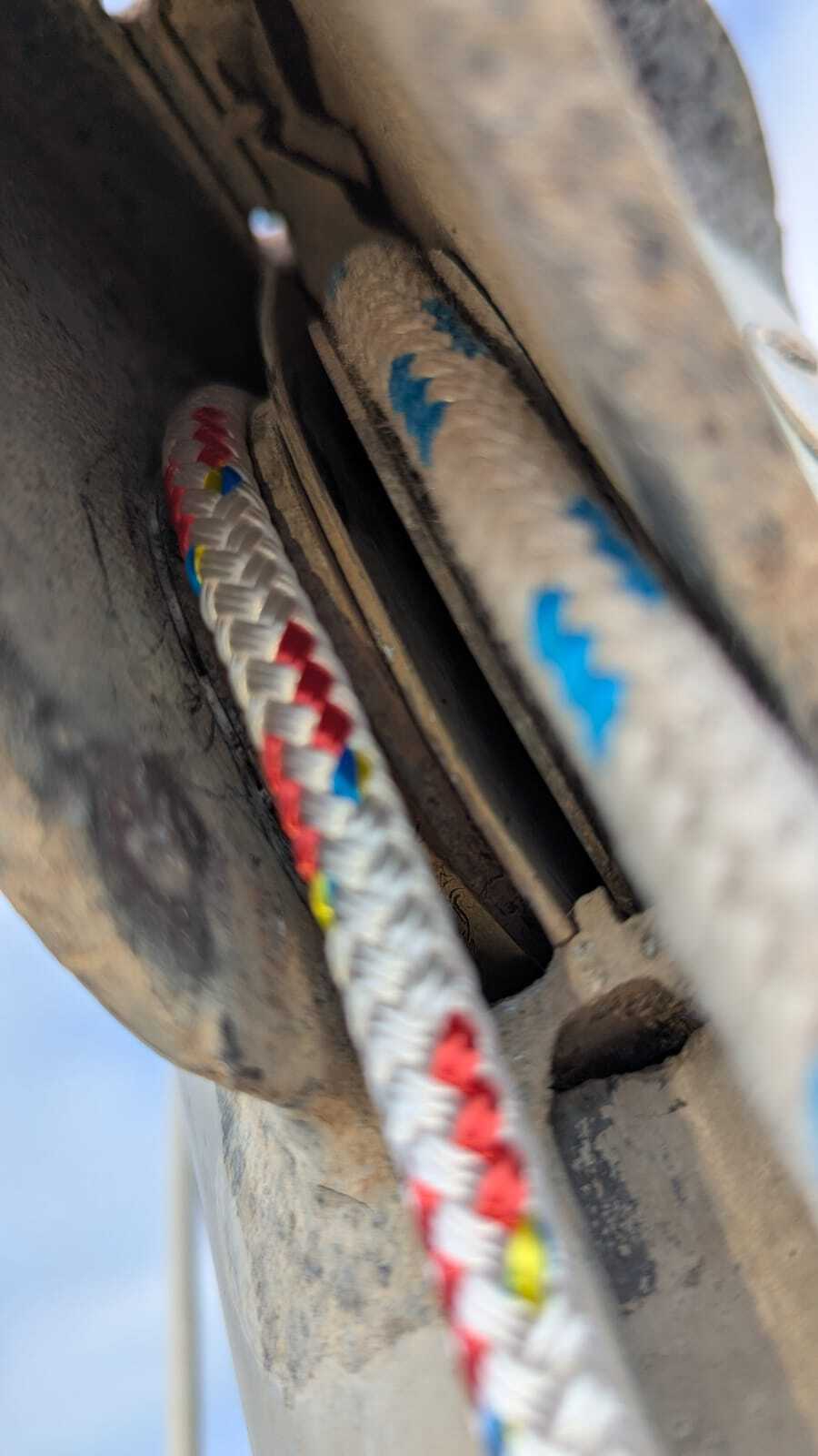 En nav, je me suis aperçu que ma balancine ne pouvait pas bouger. Une fois au port, je suis monté au mat de mon Jeanneau Mélody pour faire l'état des lieux. Là j'ai découvert un réa de balancine totalement bloqué (à gauche sur la photo) et une cloison séparatrice du réa de drisse de GV défectueuse. Ma question c'est comment réparer tout ça ? Faut il obligatoirement démâter ? Merci à toutes et tous pour vos éclairages.