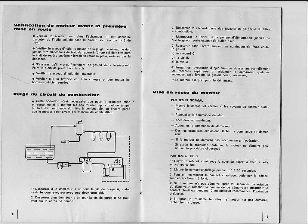 La purge du 4236 version 73 cv (échangeur de température de plus petite dimension que sur le 82cv, échangeur “plat“) ne m’a jamais causé de souci. Avec pompe GO CAV rotative (p53 – photo 2).