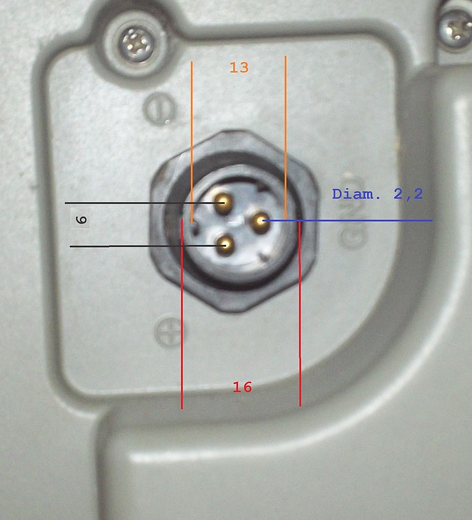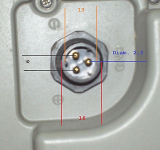 Prise "Amphenol Socapex", type 10SL-3, avec verrouillage "quart de tour", norme MIL-C-5015, possibilité bien plus probable, référence Radiospares n°442-2319 (ça coûte un bras !)