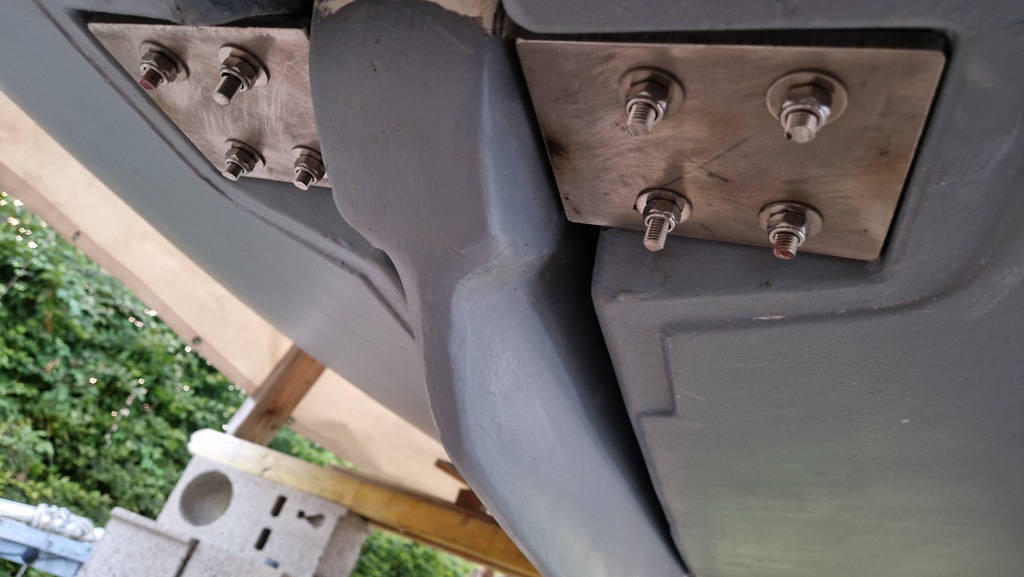 Jean Francisc0:Eh bien j'en suis actuellement à la derive.J'ai enlevé la quille et plaques sont en effet bien cuites.J'ai pris les dimensions, je pense les refaire à partir d'un plat brut inox et d'un tube inox que je vais couper et souder dessus.·le 31 août 2024 06:35