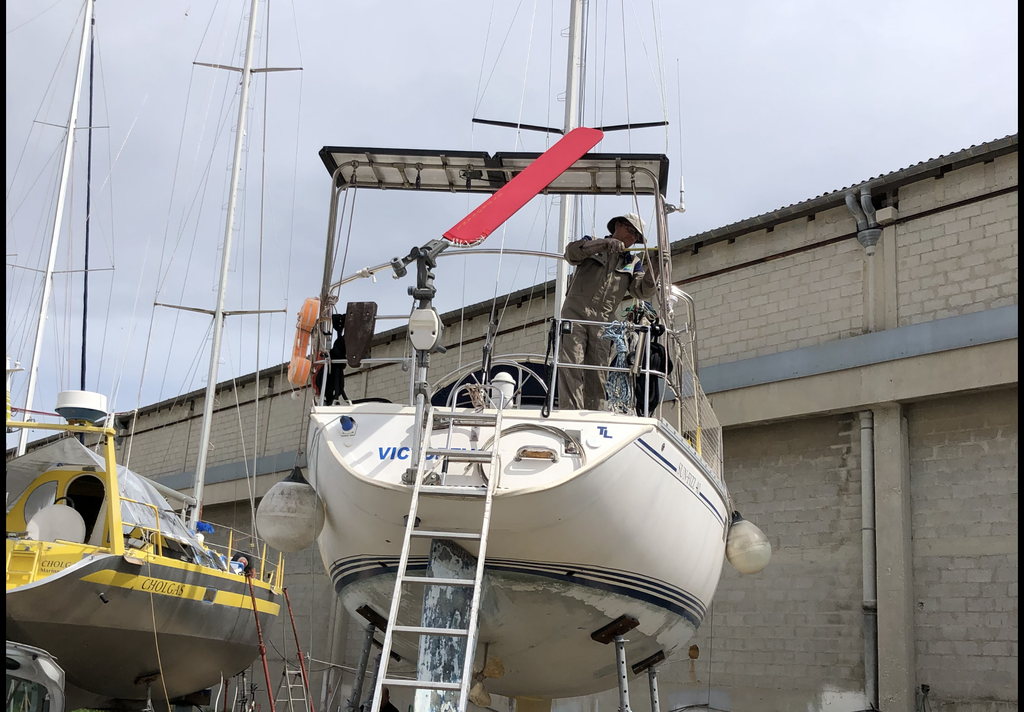 et derrière une capote d'1m80 de haut, un bimini de 2m de long, un portique avec des panneaux voir une éolienne dessus ... ca marche encore ? L'aérien de l'hydrovane continue à savoir d'ou vient le vent, et a assez de puissance pour piloter la pelle ?