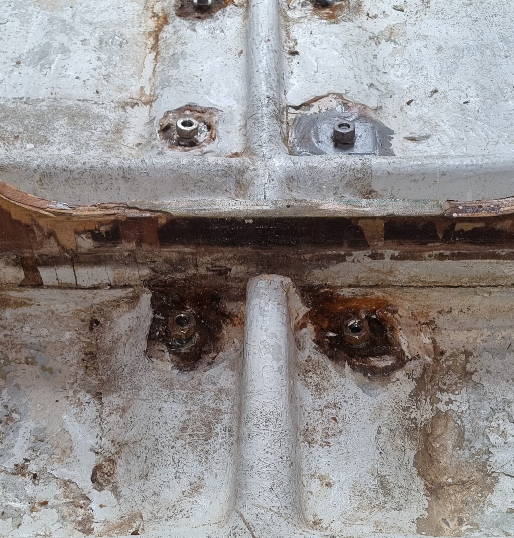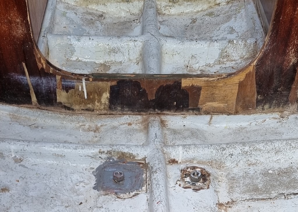 En photo l'écart entre les boulons et les varangues sur mon bateau lors du changement des boulons ..