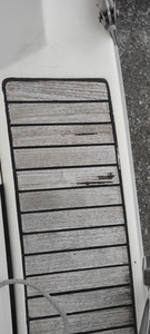 Il faut faire un gabarit sur un transparent ou prendre les mesures exactes plus photos. Avec ça Directeck peut te fournir les plaques à coller + colle + conseils de pose. Ils m'ont expliqué ça lorsque je les ai rencontrés au Grand Pavois. Mais tu peux aussi contacter une entreprise spécialisée dans la pose de ponts en teck. Ils préparent les plaques dans leur atelier et te les envoient prêtes à coller + les conseils de pose. Exemple 4B Menuiserie peut le faire. Ils sont dans le sud mais ils peuvent livrer les plaques partout en France.