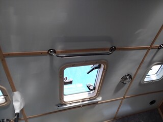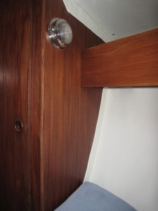 Des petits tasseaux souples avaient étés collés (epoxy) sur la coque comme des couples, du polystyrène en rouleau plaqué entre eux, et des panneaux de cp finition teck etaient vissés discretement sur les couples (d'autres choississent la solution lattes fines de teck-sur les Fisher les autres boiseries interieures, pirtes...sont teck, ou autre)