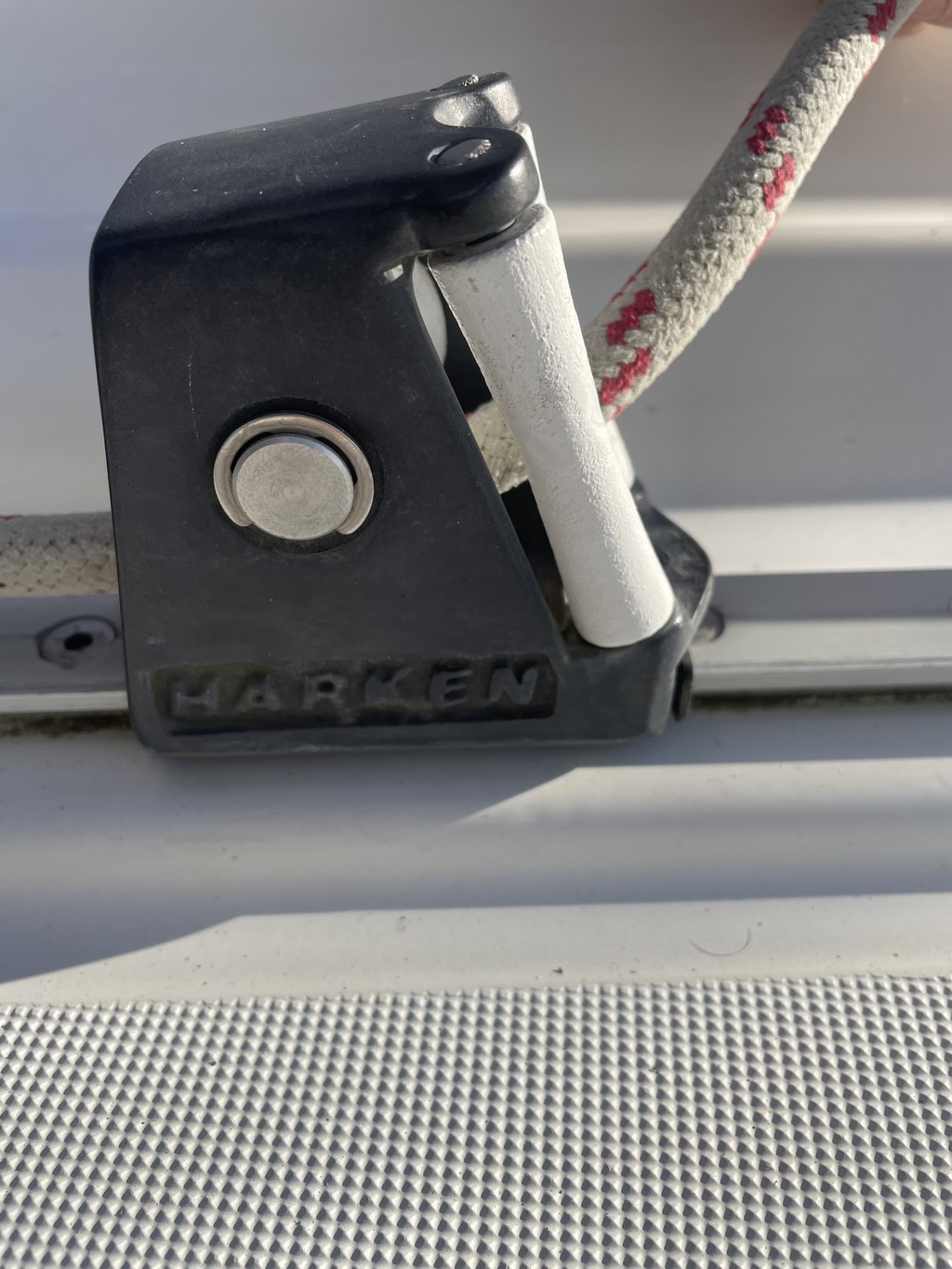 Je pense changer les réas latéraux sur mes chariots de génois Harken, ils sont en mauvais état. Avant de démonter les goupilles verticales avec une tête étoilée je voulais avoir vos conseils. Pensez-vous que je puisse réutiliser ces goupilles, connaissez-vous leurs noms précis afin que je puisse en acheter de nouvelles si je les abîmes en démontant ? Je joins des photos.