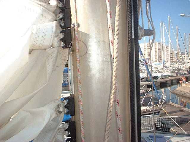 Si le crochet est bien calculé, on n'a même pas à y toucher quand on remet les coulisseaux en place en larguant le ris...
