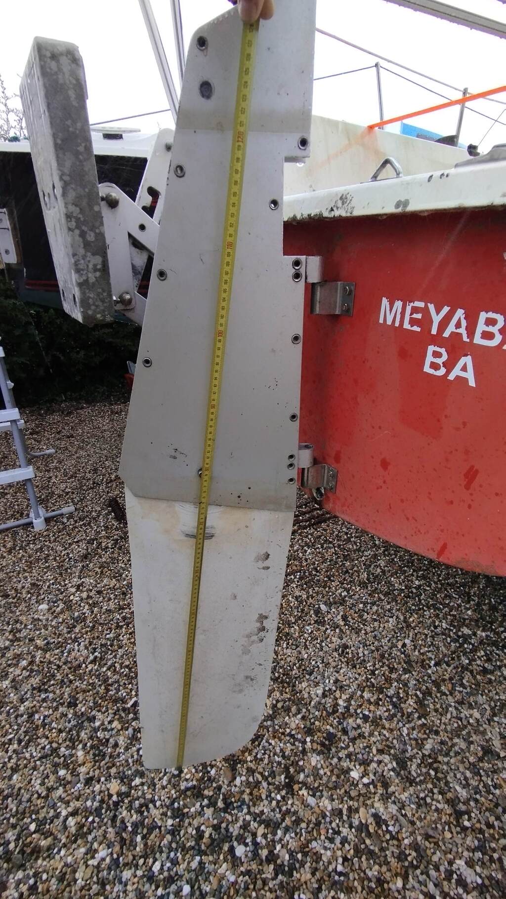 mon micro challenger est de 84. pouvez vous me dire quelle est la longueur de vos safrans, pour quelqu'un qui aurait le même bateau ? depuis le bas de la ferrure jusqu'à la pointe, le nouveau dépasse de la ferrure de 75cm ce que je ne trouve pas très long. L'ancien 19cm de plus, ce que je trouvais un peu long pour le coup. pourriez vous me donner vos mesures afin de comparer ?