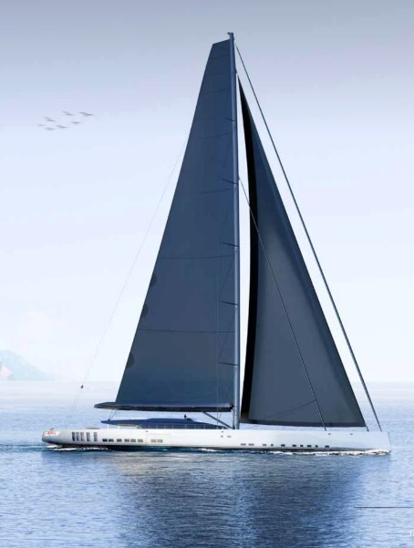 Ce futur Hollandais volant (ou coulant?) de 81m de long sera gréé en sloop et doté du mât le plus haut du monde: 95m. Le record, pour le moment.