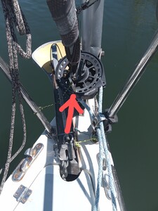 Par contre, avec ce montage il est impératif de bien faire attention au sens d' enroulement qui ne doit pas avoir tendance à détorroner l' étai quand on enroule.