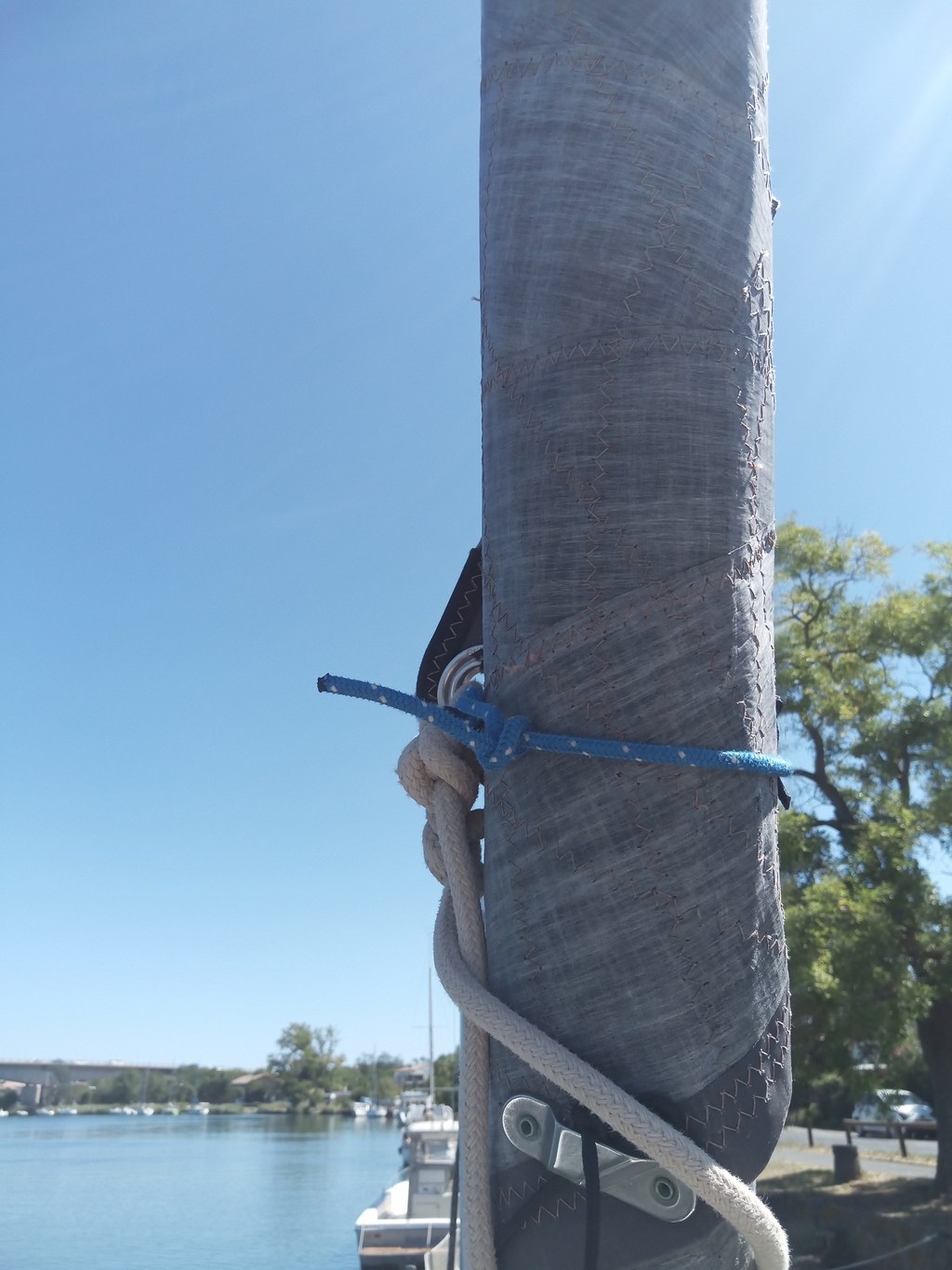On peut aussi saucissonner la voile avec une drisse de spi au pire.