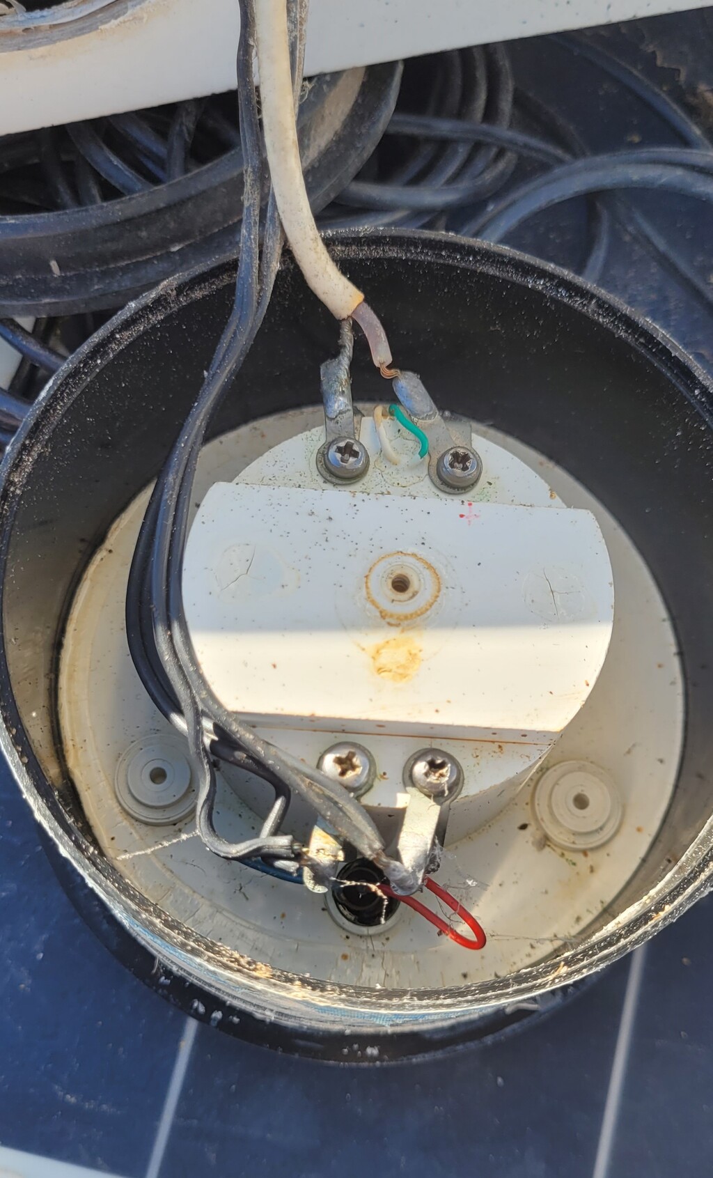 Le cable de l'anémométre était endommagé (Je l'ai réparé) par la contre plaque du pied de mât.