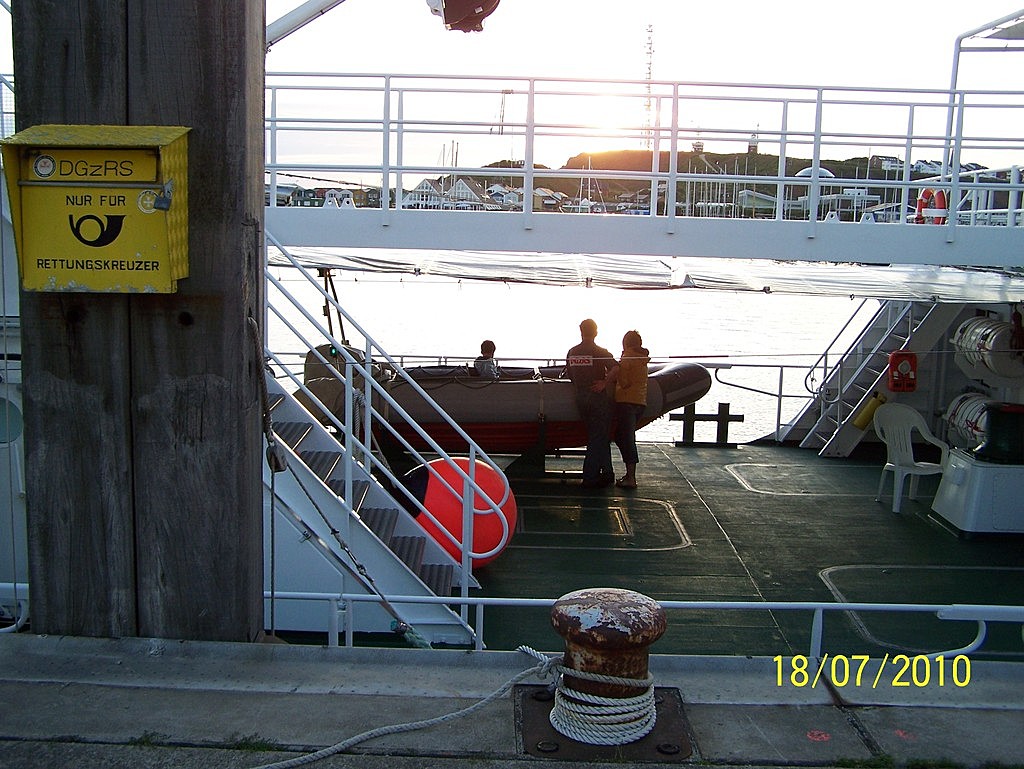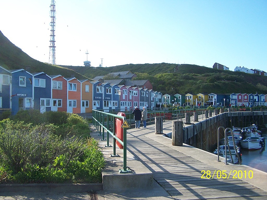Helgoland , c'est mieux qu'un détour , on joue mieux avec les forts courants de l'estuaire de l'Elbe et l'escale est très très intéressante pour faire le plein de gazole (longue nav au moteur dans le canal de Kiel), de boissons fortes , de parfums , de clopes , de montres rolex ou breitling............une île dépaysante bizarre au premier abord ,elle a été rasée pendant la dernière guerre ; sa reconstruction est pour le moins douteuse , mais si on se donne la peine de monter sur la partie haute (il y a un gros ascenseur pour les déglingués comme moi)on y trouve une vue étonnante et matière à réfléchir sur le dernier conflit dans cette région de l'Europe ....