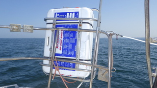 C'est juste parfait, à un bémol prés : ca cache en partie les 120° du feux de poupe ... mais je ne me vois pas le déplacer car le câble passe dans les tubes... De l'autre coté il y a le support de la bouée fer à cheval, que je garde car il est soudé au balcon.
