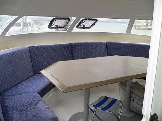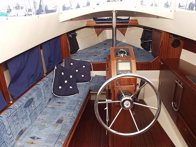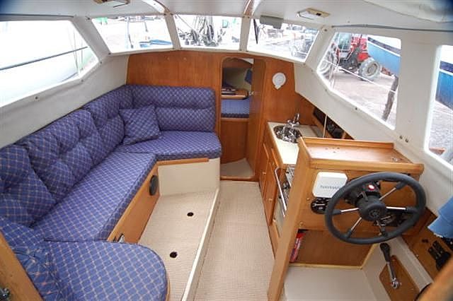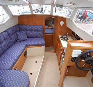 C'est notre premier bateau, et lorsque nous somme remonté de Dahouet a Boulogne debut mai 2005, on a bien été content de l'avoir. On souhaiterais juste amélioré un peu car difficile de manoeuvrer. Y a un coup a prendre, car barre à roue a cable en timonerie et barre franche dehors. On préfere quande même quand y fait beau.