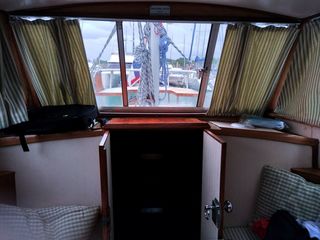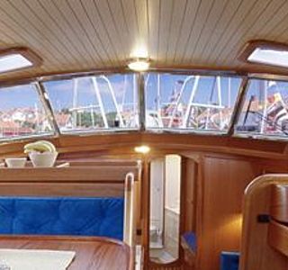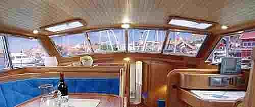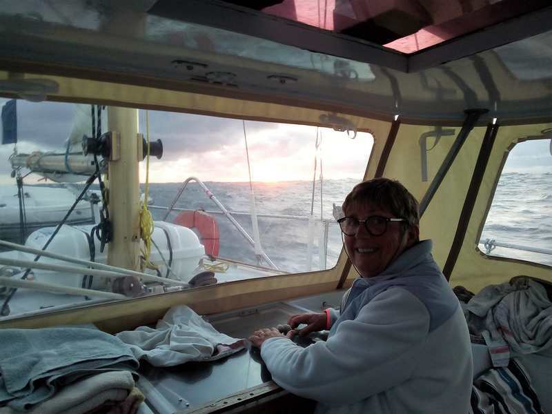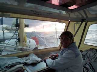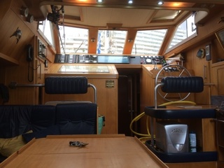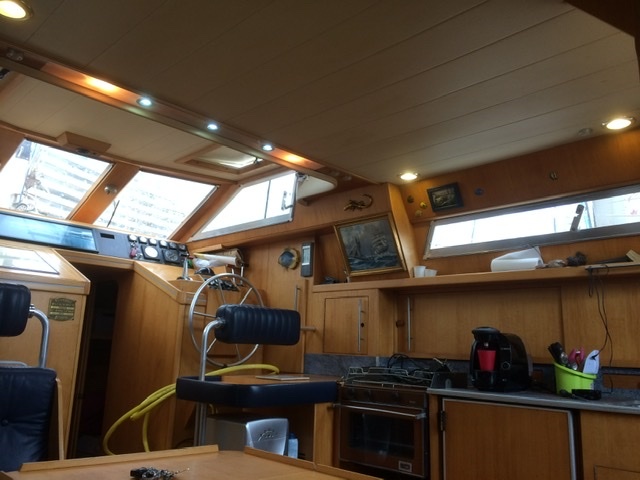 Nous avons notre bateau que depuis peu mais quel bonheur que le timonerie. Nous avons notre première sortie un peu hivernale il y à 2 semaines, par 25/30 nœuds de vent et temps pluvieux et bien à l'abris. Même les réglages se font depuis la timonerie en ouvrant les portes latérales pour le génois ou la vitre arrière pour les écoutes de G.V. et artimon.