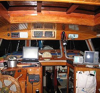mon poste de timonerie interieur est tel un cockpit de "corsair" (l'avion).