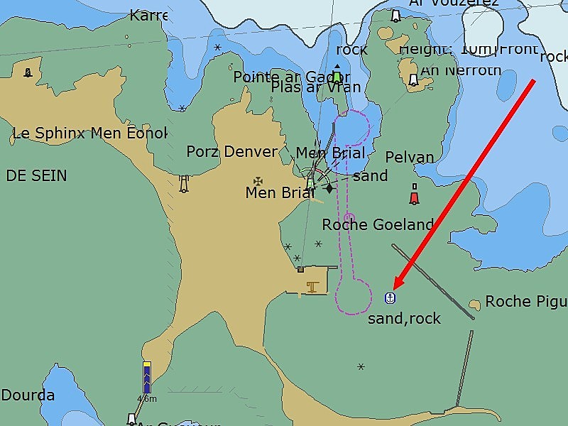 Sachant que je mouille 3x la hauteur, les jours de gros coef, il faut bien calculer le rayon d'évitage, qui se trouve considérablement rallongé. C'est un inconvénient, mais ça me sécurise.