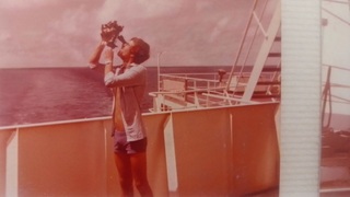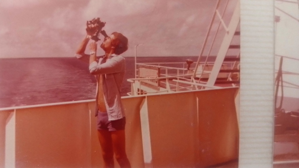 nomades:La seule photo ou l'on me voit avec un sextant ...j'avais beaucoup plus de cheveux et la "barque" gitait beaucoup moins, c'est sur un pétrolier de 250000 t ca gite moins ' meme si cela roule pas mal dans la grande houle de l'cean Indien. Si je retrouve cette photo je vous la remet histoire de completer la séquence "nostalgie" surtout que c'etait en 1974:-(·le 10 août 20:10