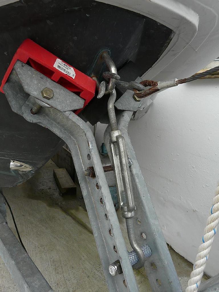 Placer l'étalingure en hauteur permet 1°de s'assurer qu'elle est bien... assurée ce qui évite de se retrouver avec le bout de chaîne qui part à la flotte rejoindre le reste du mouillage 2°de pouvoir larguer le mouillage quelle que soit la quantité de chaîne restant dans la baille