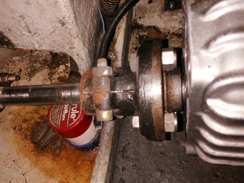 J’ai pu mesurer sans difficulté le diamètre de l’arbre d’hélice, qui est de 25 mm. En revanche, je rencontre un problème pour finaliser ma commande : le bateau étant actuellement à flot à Nouméa, et l’ancien soufflet toujours monté sur le tube d’étambot, je n’ai pas accès au diamètre extérieur du tube, indispensable pour identifier la bonne référence du joint.