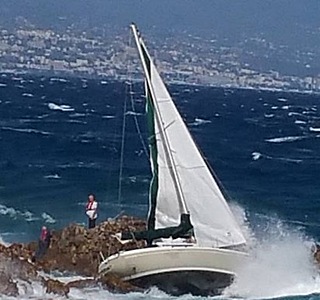 Grosse frayeur un voilier emporté par les fortes rafales de vent dans les rochers