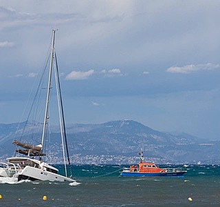 En Méditerranée, le vent est tellement fort que "les moteurs " d'un Swan n'étalent pas et qu'un voilier en panne de moteur n'a d'autres solutions que de dérouter un paquebot... C'est surement à cause du dérangement climatique...