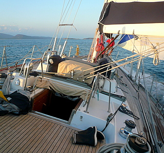 "Par force 10, un Swan avance au moteur sans difficultés."