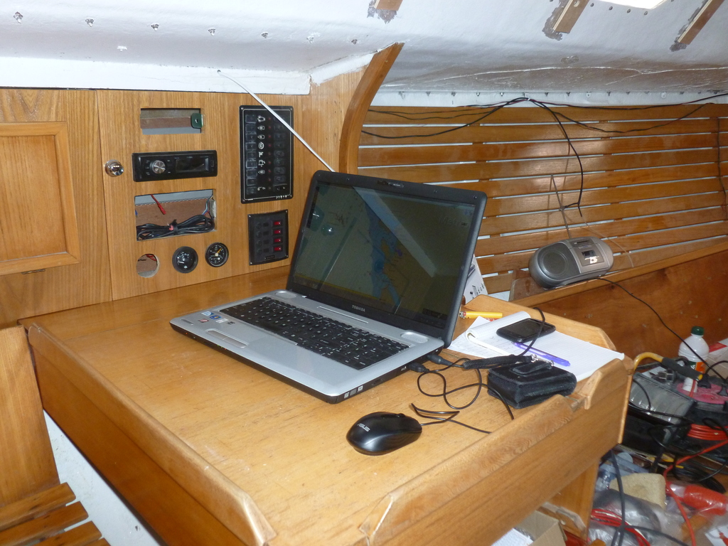 qui avait un vaigrage en lattes d'acajou ajourées. C'était visuellement assez réussi (dans l'esthétique de l'époque !) avec la coque blanche, c'était bien aussi au niveau confort, ça isolait très bien de la condensation de la coque. Mais ça n'était pas démontable, et à la fin de la saison, il y avait derrière (et bien visible) un ramassis immonde de cheuveux, poussière, sable, miettes, débris de toutes sortes. La seule solution pour nettoyer était de vider entièrement le bateau et de passer le Karcher entre chaque latte. Belle galère !