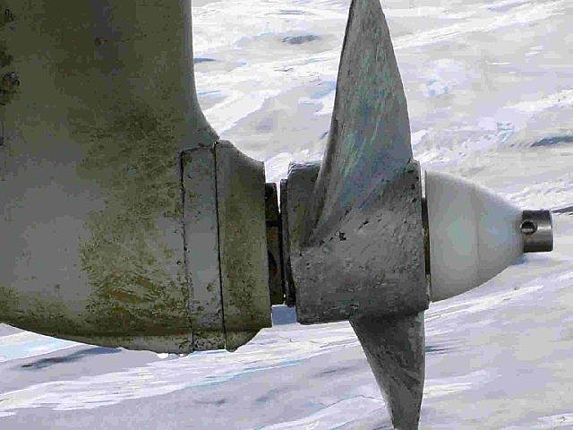 d'une hélice recouverte de divers mollusques de façon asymétrique, les pales n'étant pas couvertes par les bestioles de la même façon??