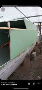 tikipat:Sur mon cata le plan des étraves étaient droites , ce que j ai fait à la construction , puis j ai shappé un morceau de mousse PU ( et stratifié ) pour les faire un peu inversées uniquement pour l esthétique ·le 25 sept. 18:06