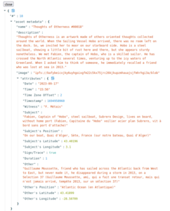 • Enfin le projet, puisqu’il se concrétise en une collection NFT pouvait aussi servir de base à un financement participatif. Ou, dit autrement, il est possible de vendre ces pensées, comme des cartes postales, à ceux qui veulent posséder un morceau de l’œuvre, ceux qui veulent soutenir nos aventures, ou encore ceux qui collectionnent les NFT originaux. La collection est à la vente sur la plateforme Opensea :