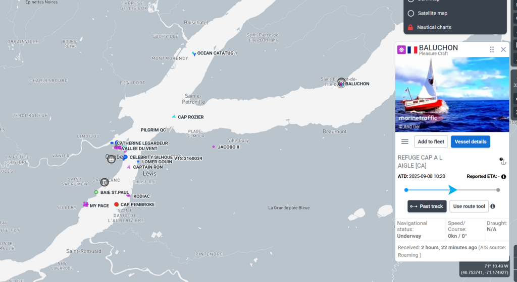 La position de Baluchon n'a pas été actualisée depuis ce matin 9h26, alors que d'habitude, c'est toutes les heures ou deux heures...