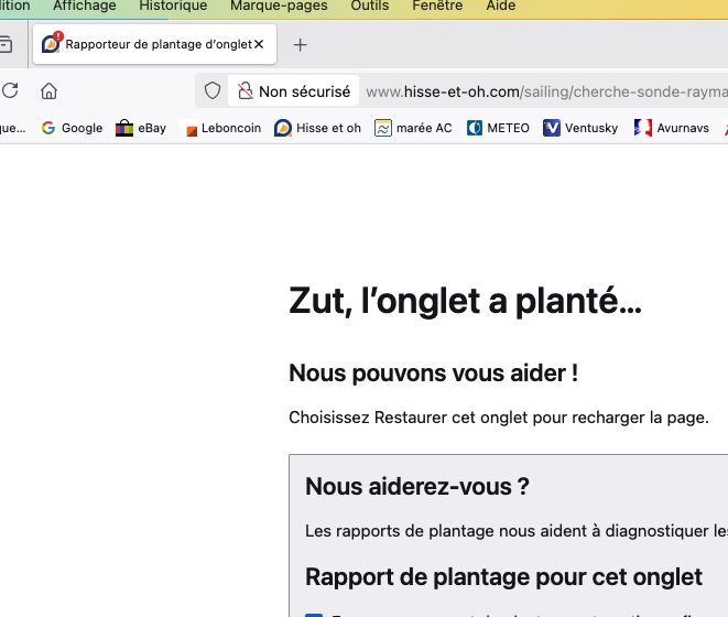 Bonjour, depuis quelques mois, j'ai des plantages récurrents de H&O avec Firefox. J'ai aussi beaucoup de mal à charger les images qui mettent beaucoup de temps à s'afficher. Comme cela n'arrive que sur H&O, je me demande si cela vient de mon installation ou du serveur de H&O.