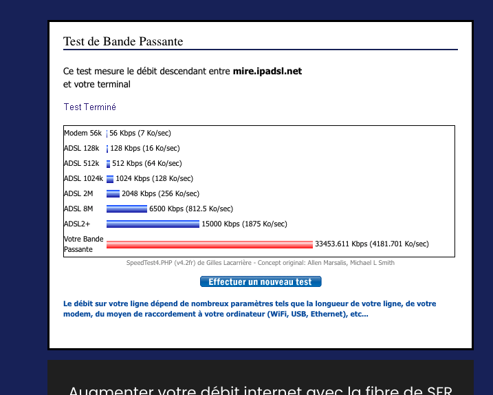 Il me semble que les ennuis ont commencé quand j'ai déplacé mon ordinateur dans la maison. D'une connexion ethernet je suis passé à une connexion par plug. Cependant, il me semble que la bande passante est tout à fait acceptable.