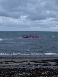 Le bateau retourné est venu s'echouer sur une plage de Guernesey