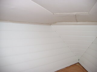 Un petit conseil, l’ancien propriétaire avait peint le plafond, j’ai eu la merveilleuse idée de coller sans poncer, sans enlever la peinture, le tasseau c’est arraché en enlevant la peinture, alors prépare bien le support décape et dégraisse avant de coller.
