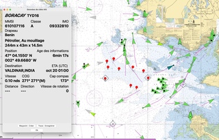Nos logiciels de navigation sont capables d'afficher ces détails. Comme ici avec le pétrolier fantôme au mouillage au large devant Saint Nazaire